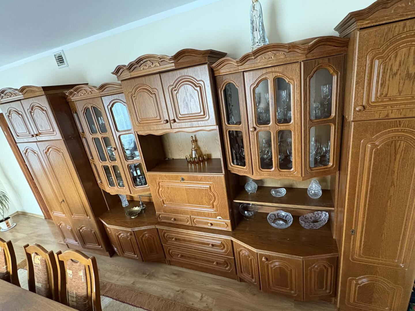 Sprzedam meblościankę widoczna na zdjęciu. Znajduje sie w niej szafa wiszaca podwojna, poki i czesc za szklem. Odbiór osobisty, okolice Jedwabnego. Cena do negocjacji
